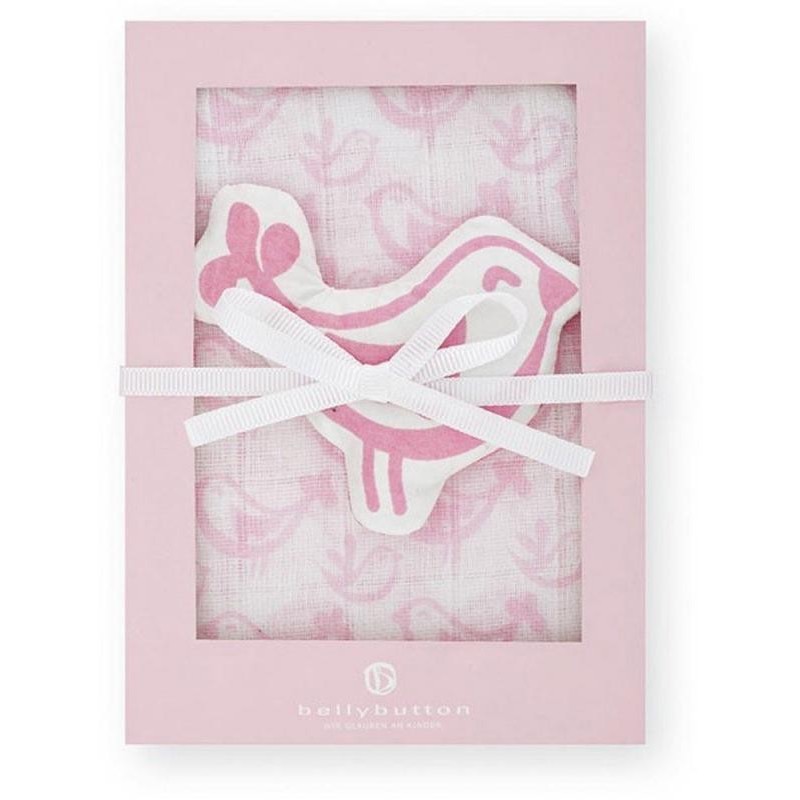 Superbe ensemble 2 grands "carrés" avec le hochet oiseau rose assorti.