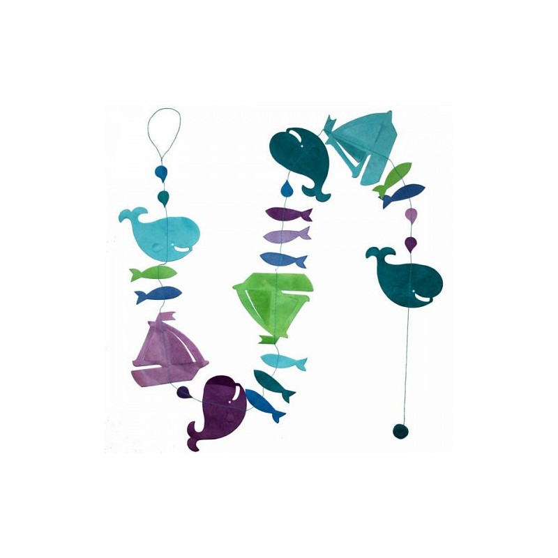 Une succession de bateaux et poissons en guirlande très légère à suspendre partout dans une chambre ou une pièce de vie.